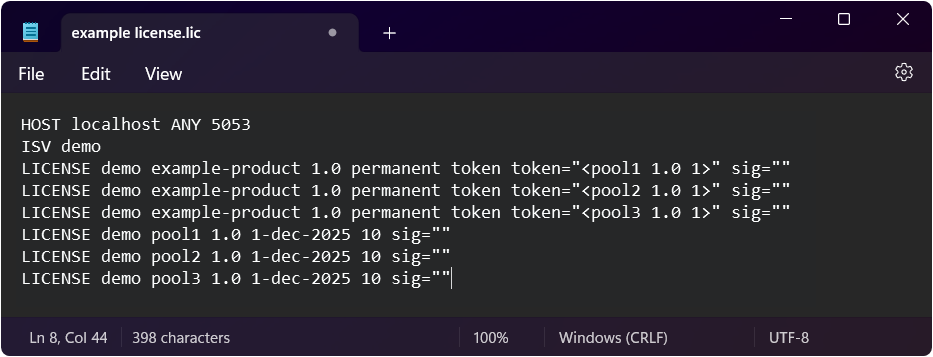 In this example we will define three distinct license pools, enforced in a specific evaluation order within RLM. The order of these pools dictates usage priority: